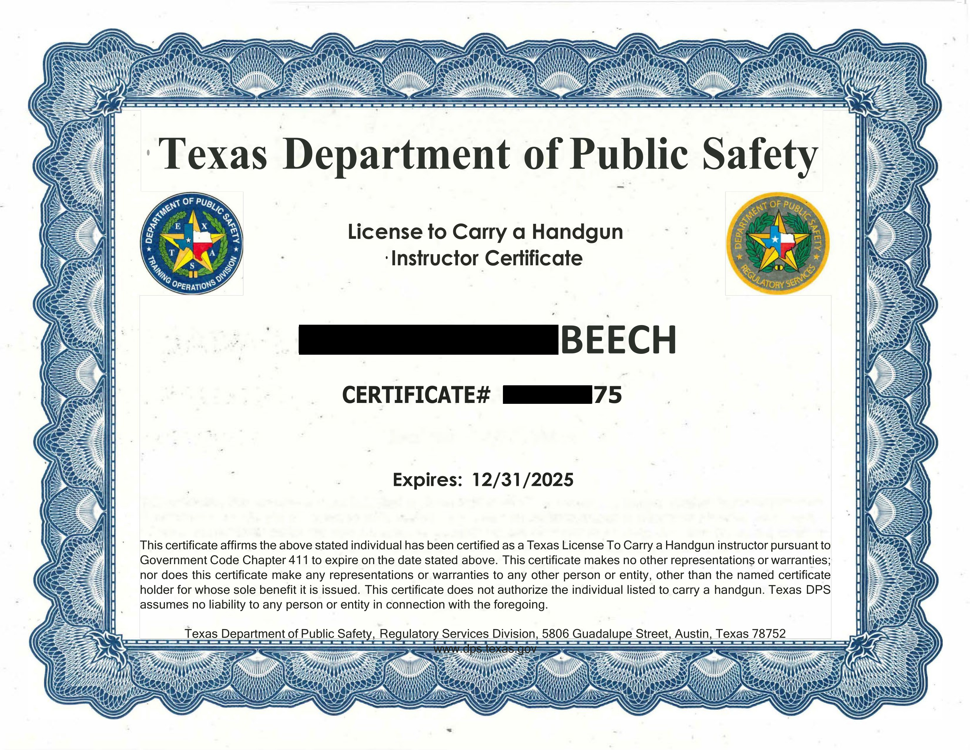 For the most up-to-date information visit: https://www.dps.texas.gov/section/handgun-licensing